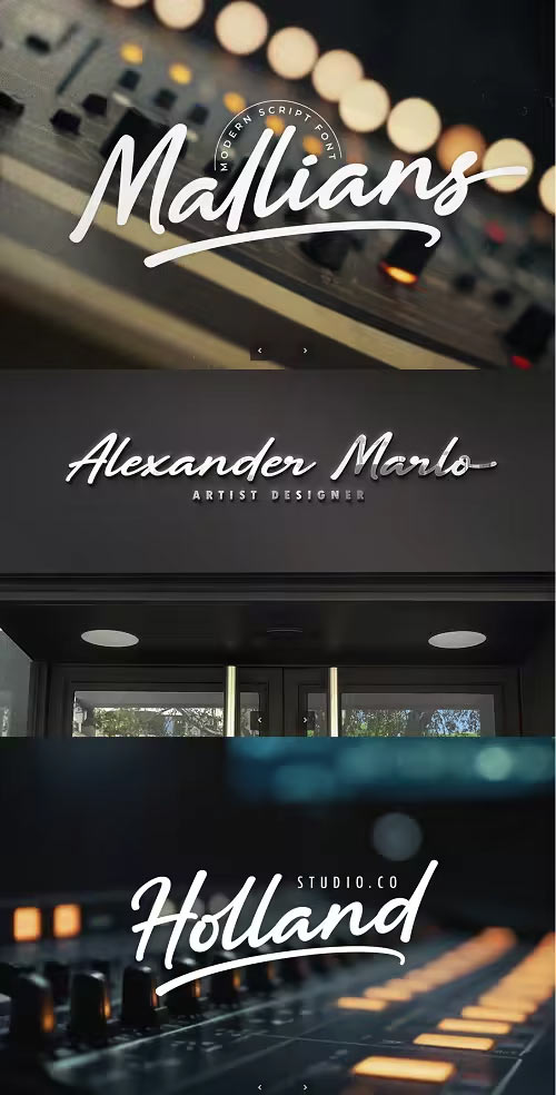 Mallians is a modern bold script font with natural feel. This font will make your designs look stand out, exclusive and authentic. This font offers opentype features such as contextual alternates, end alternates, ligatures and underline sets. It offers support for all English characters, some characters in multiple languages and standard punctuation marks are included too. Mallians is designed specifically for logotype design, typhography, branding and manymore.